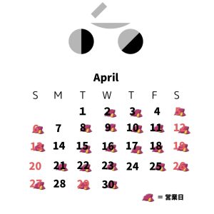 カレンダーのサツマイモのマークがついた日がOPENしております。