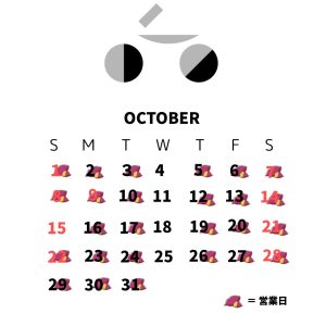 カレンダーのサツマイモのマークがついた日がOPENしております。